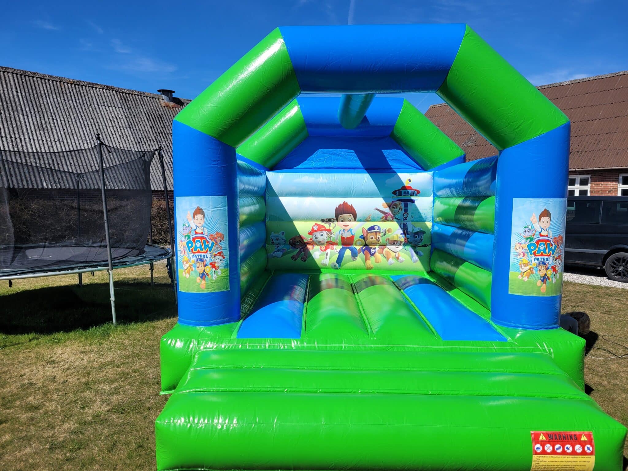 Er dit barn klar til at blive en del af helte-hundepatruljen? Vores Hundepatruljen Hoppeborg er fyldt med sjov og action! Med blå og grønne farver, lukket på tre sider og en åben front, er det den perfekte hoppeborg til små eventyrere.